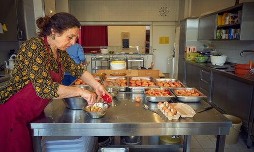 Unsere Köchinnen kochen an vier Tagen der Woche (Montag bis Donnerstag) Gerichte aus der biologisch-saisonalen Küche. Immer dabei ist frisches Gemüse und Salat. Alles wird so zubereitet, dass es den Schülern aller Jahrgangsstufen schmeckt. Auch unsere Mitarbeiter essen begeistert mit.